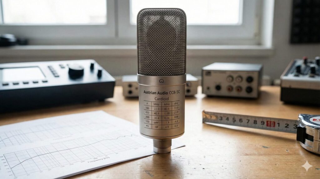 Posted on: 12月 5th, 2025 マイクの「数字」が読めれば、音は聴かずに想像できる〜Austrian Audio CC8-SCに学ぶ、最強のスペック表の歩き方 「新しいマイクが出た […] マイクの履歴書:見るべき4つの最重要項目 【周波数特性】20Hz〜20kHz:定規のように真っ直ぐか? 【等価雑音レベル】13dB SPL:小口径なのに「静寂」 【最大音圧レベル】Max SPL 155dB:スネアに突っ込んでもOK 【ダイナミックレンジ】132dB:広大なキャンバス まとめ:CC8-SCは「現代の精密兵器」である kotaro