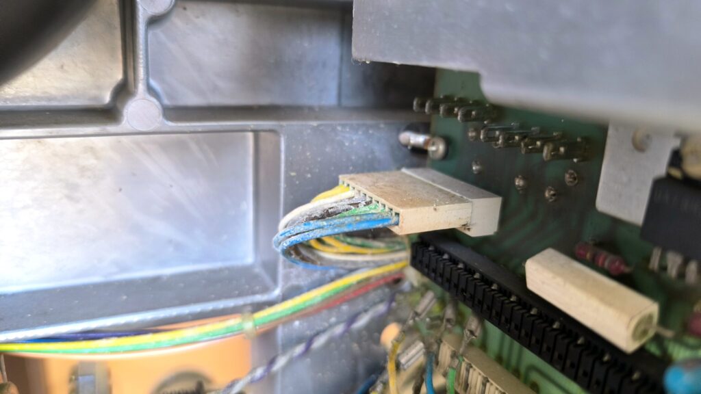 また、巻取り側は、モータードライブ基盤の上を通りますが、送り出し側のハーネスは、メインの電源基盤の裏(フロントパネルに隣接)から通る形でやってきますので、注意。
