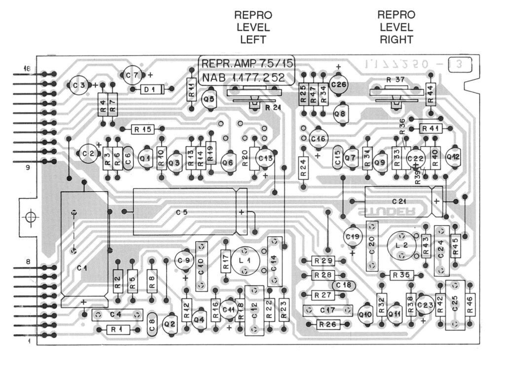 半固定抵抗(R8, R11, R14, R18)の役割 これらは、「録音バイアス量(Bias Level)」を調整するためのボリュームです。