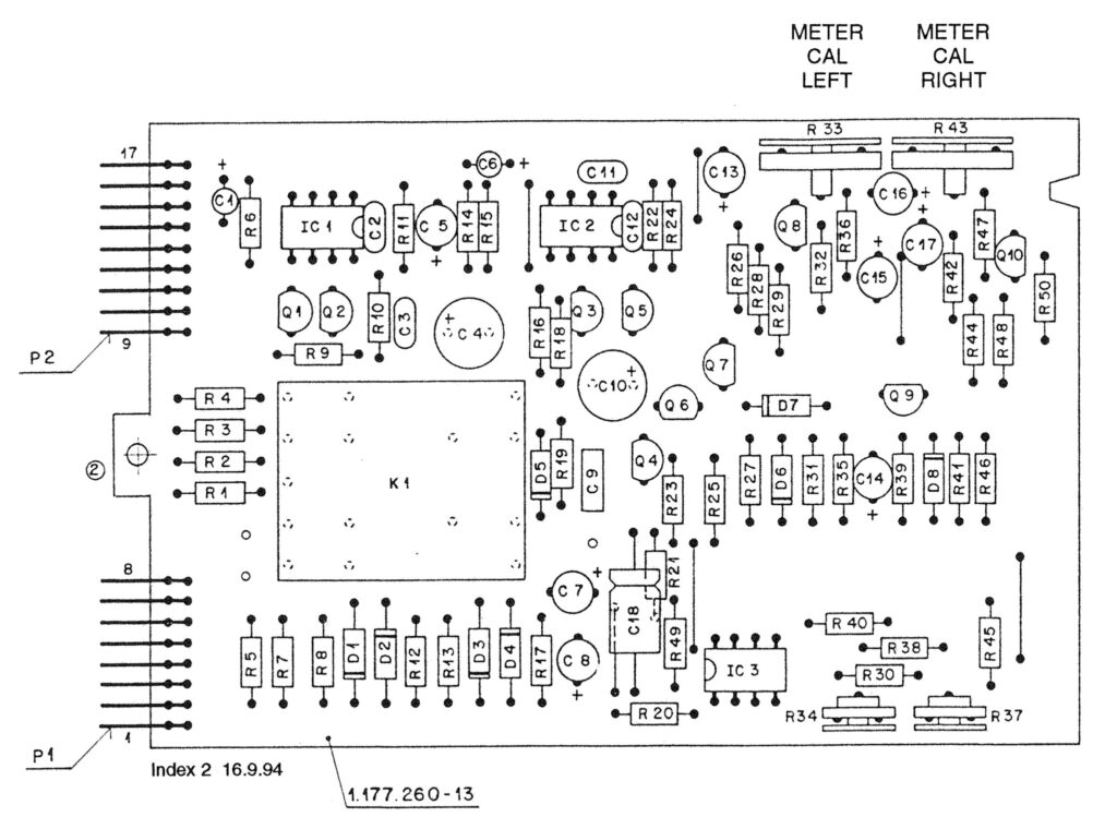 VUメーター感度調整用 (R33, R43) 交換時に必ず「0dB = 0.775V」等の基準信号を使ってメーターの振れを再調整する必要があります。