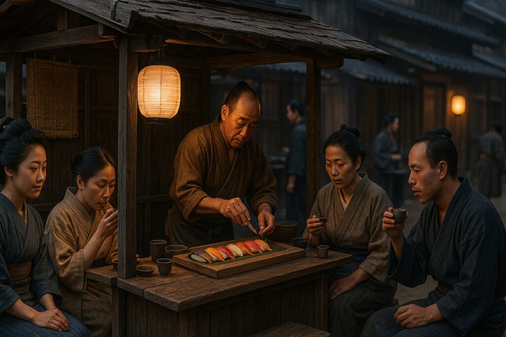 江戸の握り寿司は、江戸後期(19世紀前半)に都市型の“早ずし”文化から生まれた屋台料理。